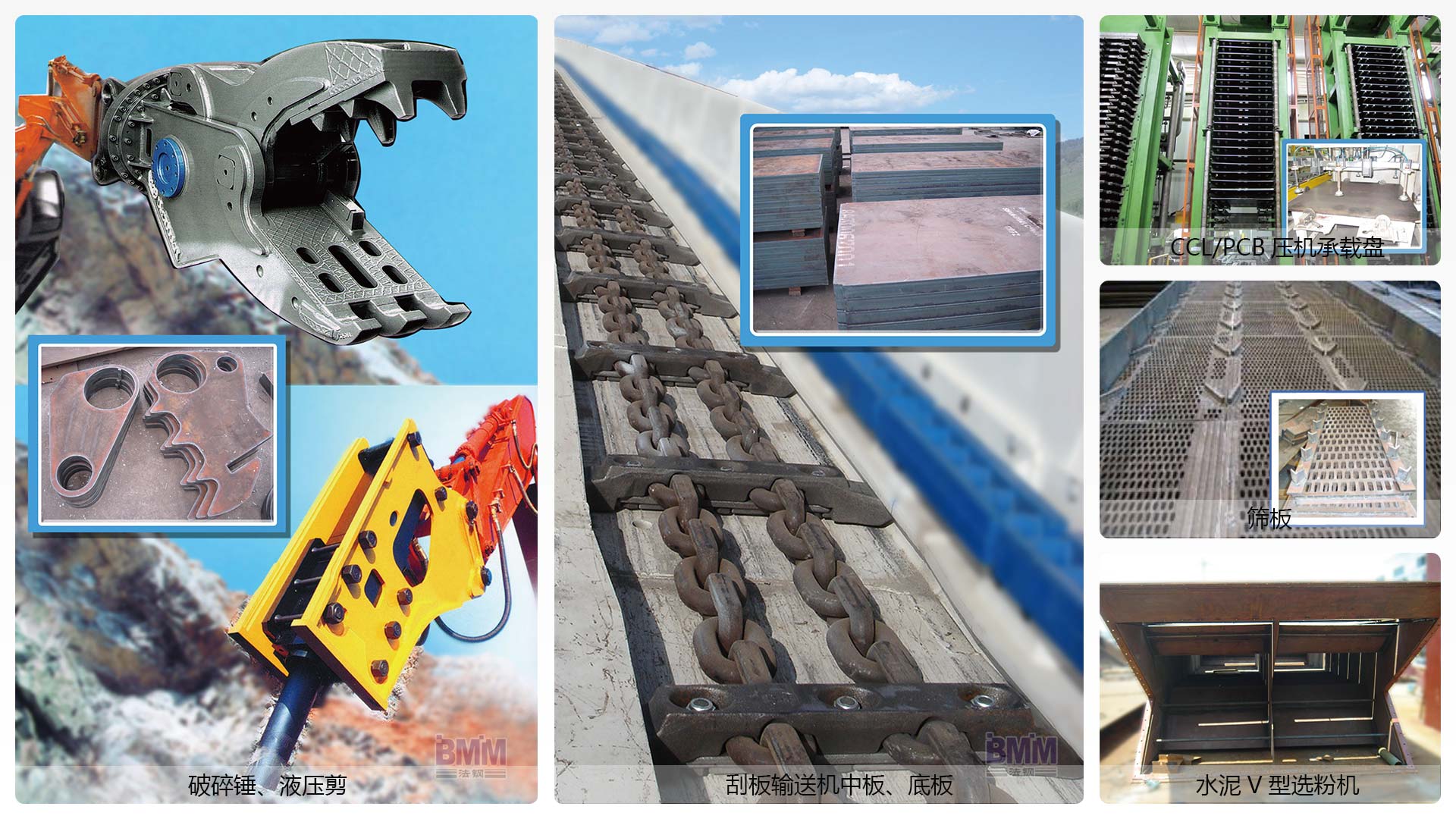 除了一般要求的数控火焰切割和数控等离子切割方式,法钢也可根据用户的个性化设计与应用要求,使用数控水刀、数控激光或线切割等切割方式来保证耐磨钢板切割件的高精度与“零”热影响区。